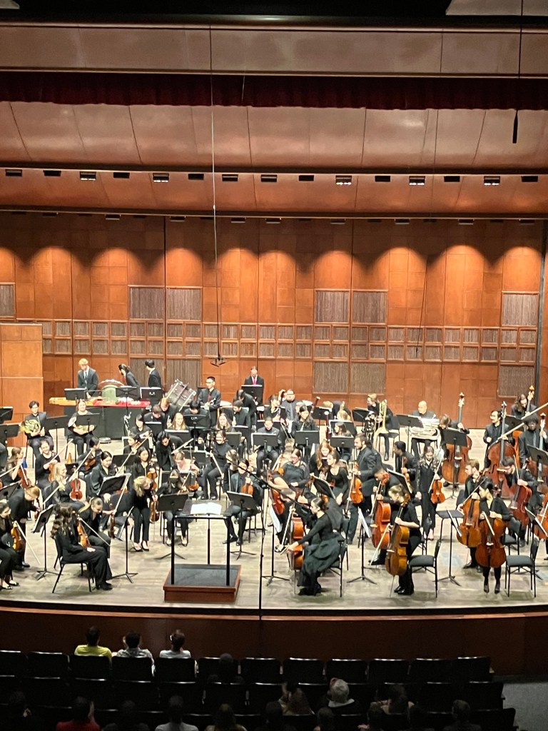 Violinist Yue Yang, a student of Kurt Sassmannhaus and recent winner of CCM’s violin concerto competition, then joined the orchestra and conductor Mark Gibson for a nuanced, effervescent performance of Sibelius’s Violin Concerto. Yang’s tone was bright and mellifluous throughout, tackling Sibelius’s virtuosic demands with vigor, elegance and technical mastery. All this despite the fact the balance between soloist and orchestra felt slightly uneven in some places, largely due to the lack of reverberation in Corbett Auditorium. But an impressive performance nonetheless.