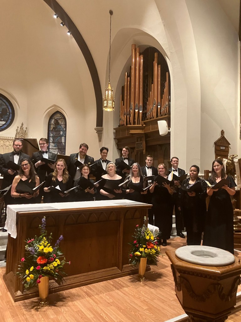 @cincinnatifusionensemble presented the spring 2024 Sandy Sanborn Martin Memorial Program at @calvaryclifton with perhaps the most eclectic potpourri of music they have programmed yet. It was also a momentous occasion for the group, as tonight’s concert marked its 10th anniversary. Under the leadership of conductors Howard Helvey and Gwen Coleman, joined by guest organist Isabelle Demers (making her fifth appearance with CFE) and pianist Brad Caldwell, they presented a program filled with old and new choral chestnuts and new or otherwise rarely-heard works stretching from the 17th to 21st centuries.