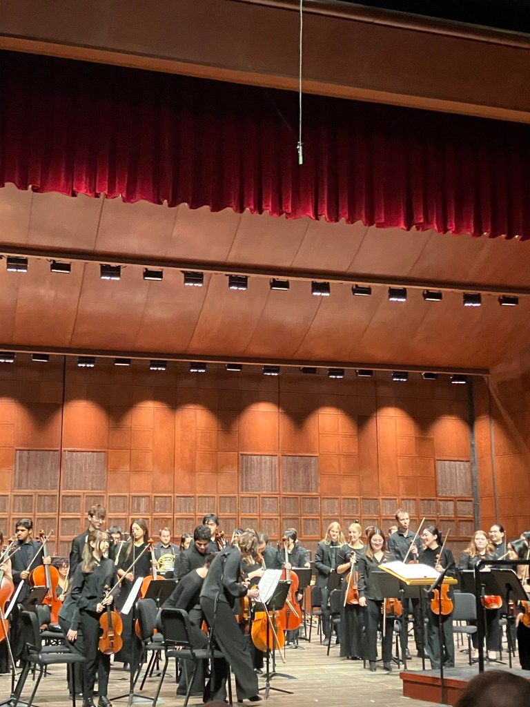 Soloist Gabriel Caal and student conductor Alfonso Keller-Casielles brought a subdued yet warmly luscious sound to Higdon’s Viola Concerto (2015, Grammy winner in 2018), with technical flourishes and long, flowing melodies recalling John Adams and Dimitri Shostakovich’s viola sonata of 1975 (particularly in that instrument’s lowest registers). Harp soloist Emily Stone followed with a gorgeous, spellbindingly scintillating performance of Jennifer Higdon’s Harp Concerto (2018), which won the 2020 Grammy for Best Contemporary Classical Composition. While not as technically challenging as, say, Alberto Ginastera’s harp concerto, it is a welcome addition to that instrument’s repertoire. Stone’s playing was prayerful, sprightly, wonderfully rich and sweetly voiced reminiscent of a soft classical guitar, particularly in the concerto’s first and third movements.