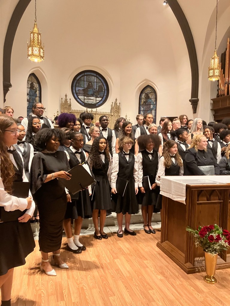 Winton Woods offered up three distinctly unique pieces by Franz Schubert, Eric Whitacre and Jennifer Lucy Cook, the last being the most innovative as it incorporated tongue clicks in the choral texture to symbolize a ticking clock. The biggest selection of pieces tonight’s program were all by Fusion Ensemble’s founding artistic director Howard Helvey, including joyous and creative settings of the texts The King Shall Come When Morning Dawns and the Thomas A. Dorsey hymn Precious Lord, Take My Hand. Helvey is one of the few composers that I know whose music always takes such great care in understanding how to write for and conduct voices, including groups like Cincinnati Fusion Ensemble, Winton Woods High School Varsity Ensemble and Calvary Episcopal. What a joy it is to have such gifted musicians as these grace the City That Sings