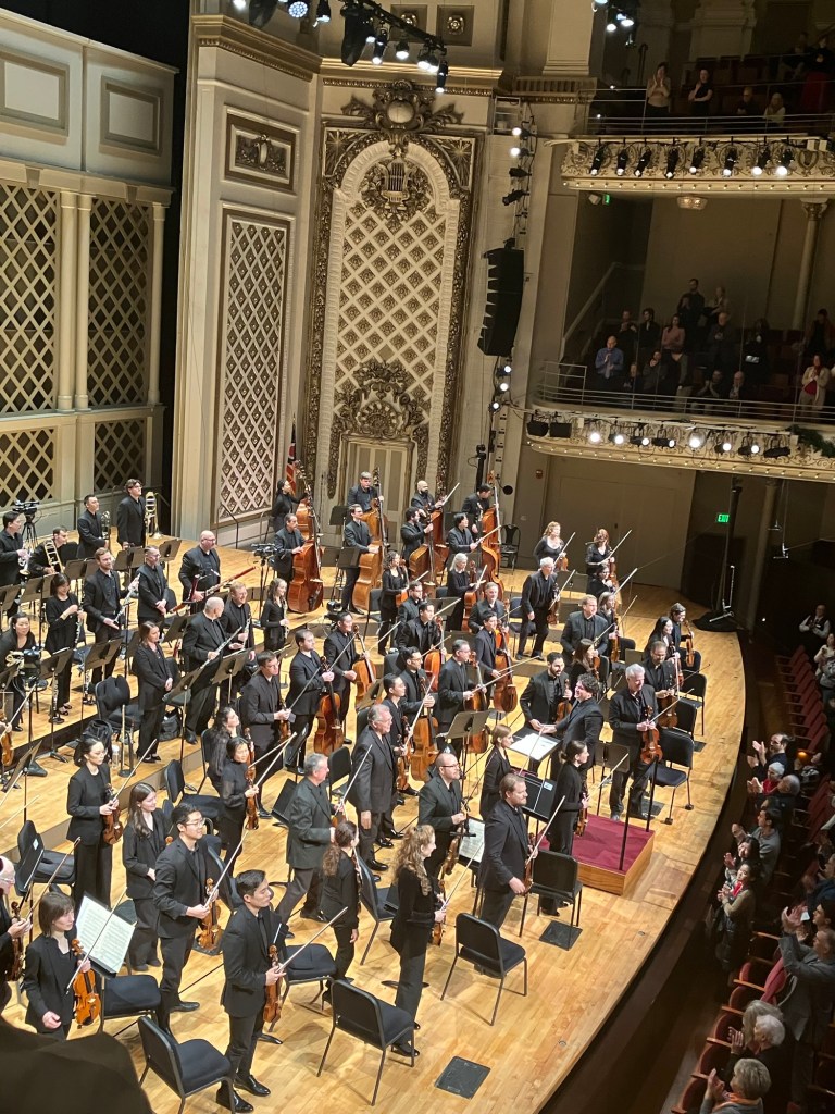 Under Music Director Cristian Mǎcelaru, the orchestra opened with an exciting performance of Simon’s Tales: A Folklore Symphony, inspired by African American stories as diverse as the folk story of John Henry and Afrofuturist comic books by the contemporary duo Black Kirby. Perhaps the most unique aspect of the work was the inclusion of two pairs of leather gloves in the percussion, used in the second movement to support the feeling of flight.