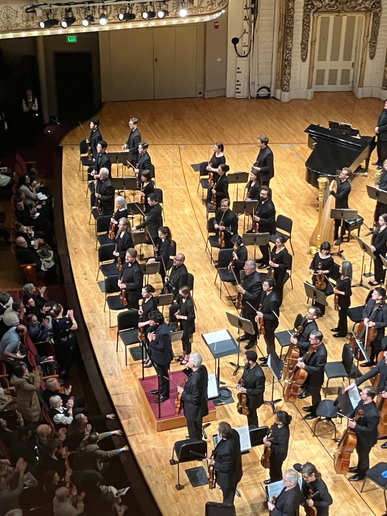 Daniel Bjarnason’s newest orchestral score, I Want to Be Alive, draws inspiration from the myths of Echo, Narcissus and Pandora’s Box, but cast in a more contemporary light meant to invite conversation about how technological advances such as AI can impact the world in good and bad ways. Mǎcelaru and the CSO turned in a spectacular U.S. premiere performance of this unique work, which calls to mind late Shostakovich, John Williams and Krzystof Penderecki. One of its most unique aspects was the inclusion of percussion instruments such as clay flower pots, almglocken, nipple gong and a battery of tuned gongs.